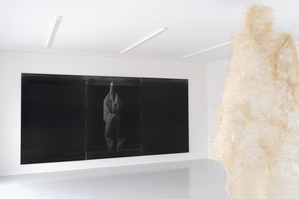 W sali na pierwszym piętrze praca pt. Mnich Dominika Lejmana spotyka się bezpośrednio ze Spokojnym wędrowcem Konrada Juścińskiego. W tym miejscu dialog między pracami jest niemal słyszalny. Obie realizacje przedstawiają efemeryczne postaci, które sprawiają wrażenie, jakby w każdym momencie mogły zniknąć. Poczucie nietrwałości tych przedstawień jest ciekawym doświadczeniem – sprawia, że nasza obecność w sali wydaje się burzyć, wchodzić w ich świat, w inny wymiar, w którym odbywa się to spotkanie.