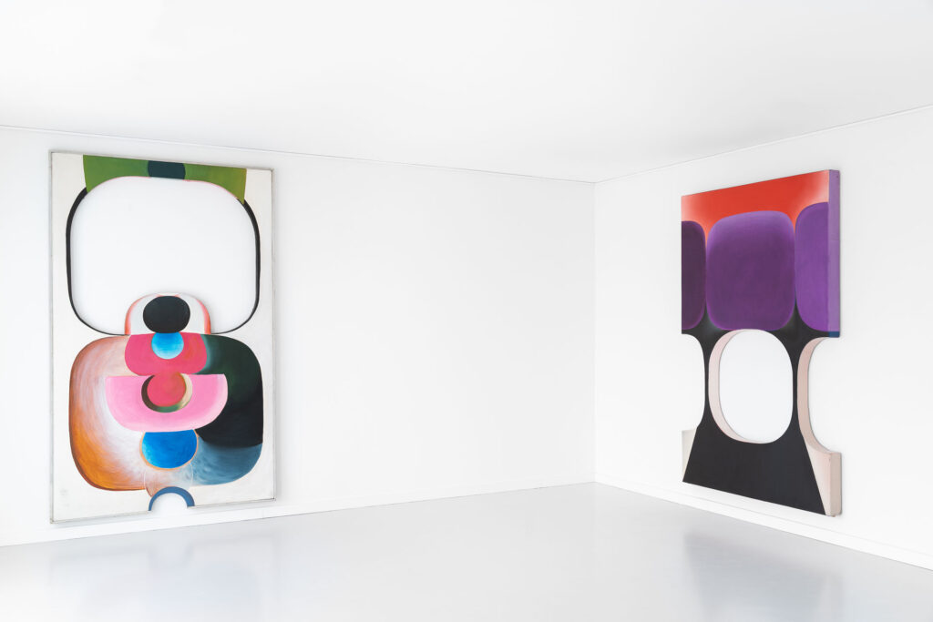 Na wystawie można zobaczyć obrazy, które powstawały w latach 60., 70. i 80., jak i późniejsze realizacje. Dzieła z roku 2000 oraz z lat 2007-2008 szczególnie przykuwają uwagę na klatce schodowej, między piętrami, na których mieszczą się sale ekspozycyjne. Ten szeroki przedział czasowy umożliwia rekonstrukcję przemian w twórczości Berdyszaka. Obrazami, które najbardziej zapadły mi w pamięć, jest Koło podwójne XX (1968) oraz Passe-partout (2000), które powstały w odstępie 32 lata. Według mnie zestawienie tych dwóch prac pokazuje różne podejścia do pustki i to, jak Berdyszak potrafi ją wykorzystać do konkretnych celów. Pierwsza realizacja zawiera kolorową kompozycję złożoną z organicznych kształtów, gdzie pustka (dziura, brak płótna) staje się po prostu kolejnym kształtem czy kolorem i sprawia, że obraz zyskuje dodatkową przestrzenność. Pojawiające się cienie pod wpływem zmieniającego się światła transformują relacje zachodzące pomiędzy kształtami.