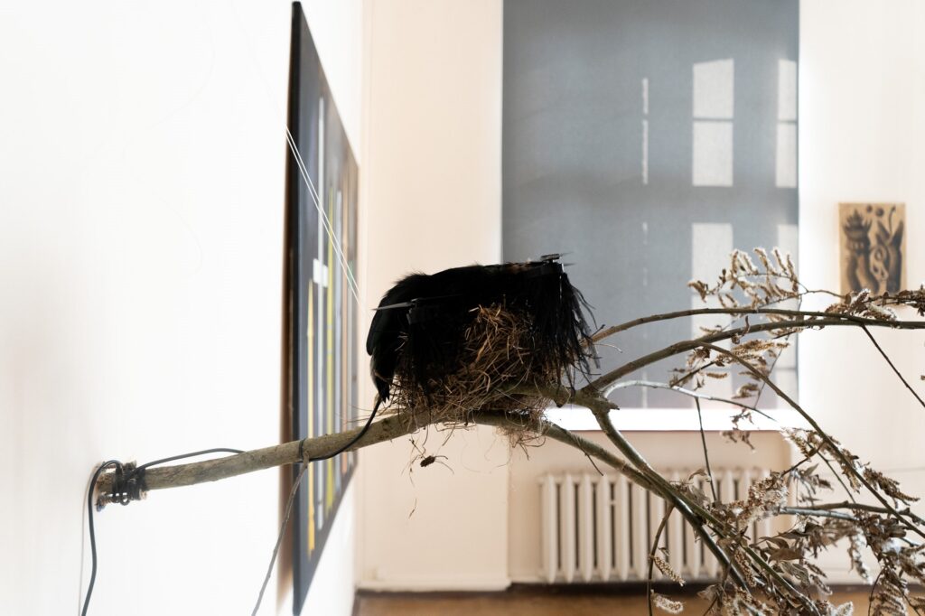 Praca Dominika Dragosa Pohludki The Day the Last Bird Dies to złowroga instalacja – czarny dron umieszczony w gnieździe na przyczepionej do ściany galerii gałęzi. Dron przywodzi na myśl nie tylko historie ze współczesnej linii frontu, ale także lęki przed galopującą technologią, która krok po kroku wypiera to, co naturalne. Pokrewne tematycznie są pociski malowane przez Agnieszkę Sowisło-Przybył. U artystki gładko malowane rakiety, ustawione w rzędzie przybierają formę wręcz religijnej ikony.